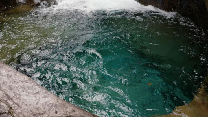 龙潭的水没有大楼瀑布那样垂直的落差,它上下共有四叠瀑布,水流顺着阶梯般的石壁奔涌而下,最后落入一个小小的水潭。相传这里曾是龙的藏身之地,这个传说为它增添了不少神秘气息。丰水期时,龙潭的水流颇有龙腾虎跃的气势,在小小的水潭里掀起不小的风浪。
