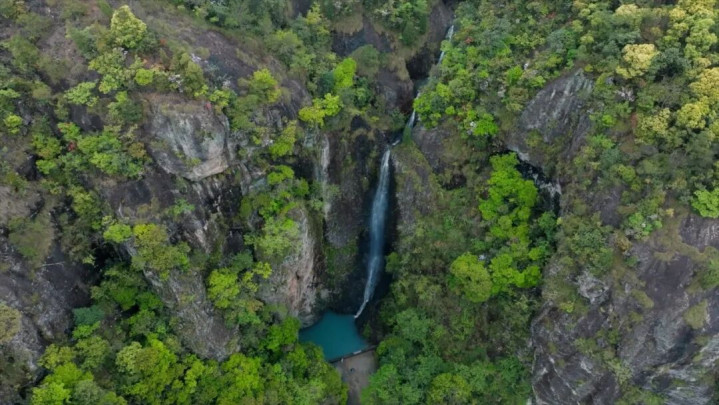 一场接一场的春雨,滋润着浦江的青山绿水。山间的溪水从岩壁上垂落,汇成山野里独特的雨后奇观。随着丰水期来临,那些藏在浦江山林里的瀑布也渐渐显露出来。好不容易盼来个晴天,那颗想感受“飞流直下三千尺”的心终于按捺不住了。简单收拾了一下,我们便出发去寻找浦江的瀑布。