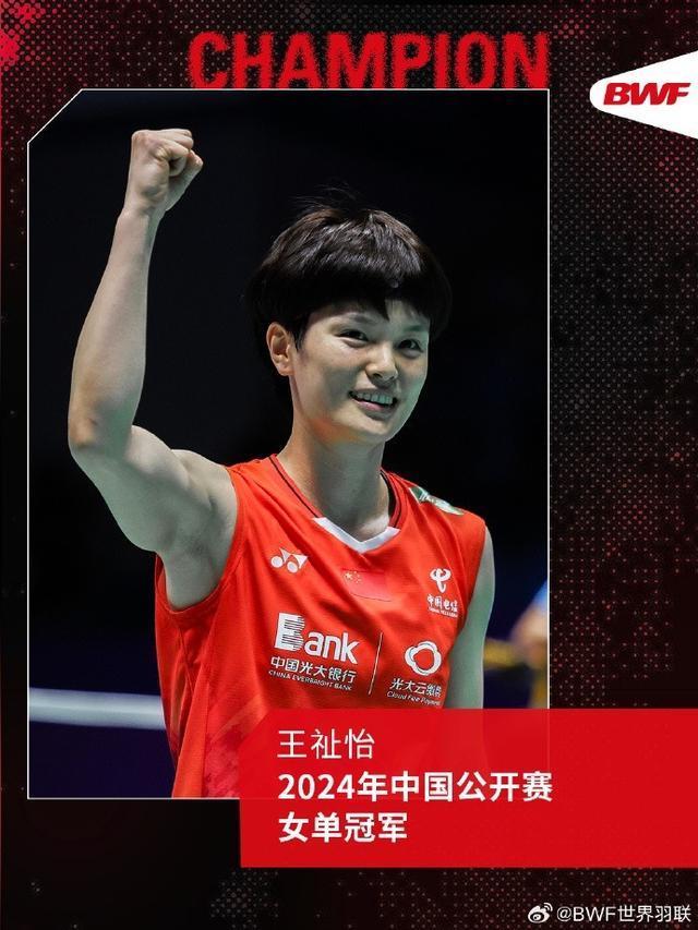 女单决赛,王祉怡21-17, 21-15宫崎友花,收获首次交手胜利,获得首座超级1000冠军,收获本赛季第4冠,也是职业生涯第6个羽联巡回赛女单冠军,是中国队时隔9年再次捧得中国公开赛女单冠军,上一次冠军是李雪芮于2015年获得。