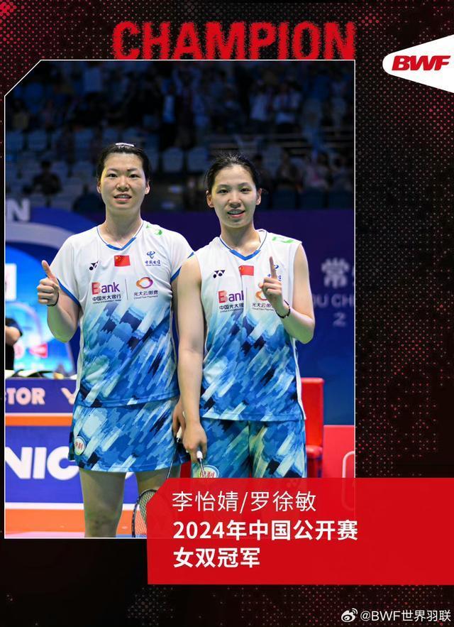 女双决赛,李汶妹/张殊贤21-11、18-21、8-21李怡婧/罗徐敏。这是国羽女双时隔10年会师中国公开赛决赛!上一次是2014年的于洋/王晓理、田卿/赵芸蕾。李怡婧/罗徐敏首次夺得Super1000冠军,不仅仅是连赢3对种子,更是连胜新奥运周期香港公开赛冠军、日本公开赛冠军和韩国公开赛冠军!成为中国公开赛历史上第16对夺冠的国羽女双!还成为2018年世界巡回赛改制以来第17对、国羽第4对夺得高级别巡回赛冠军的女双组合。
